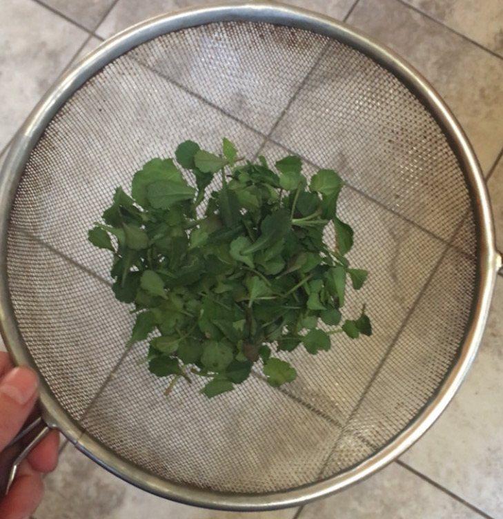 Once I’ve collected them, I wash them in a bowl of cold water and dry in a regular salad spinner, or sieve:
