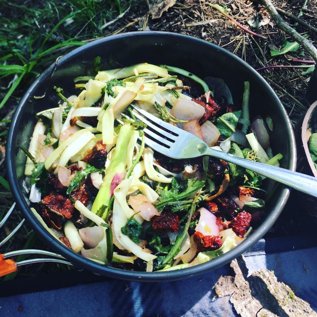 If you’ve got enough edibles in season, you can also make a quick trail stir fry. So much fun!